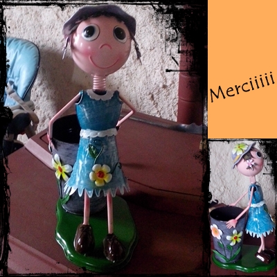 Merci beaucoup, Nounou va y mettre de jolies fleurs et cette petite bonnefemme à un prénom tout trouvé...elle s'appellera comme le petit lutin...